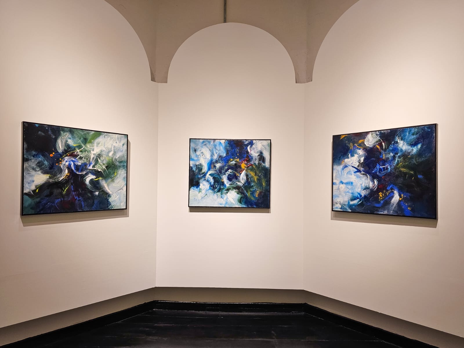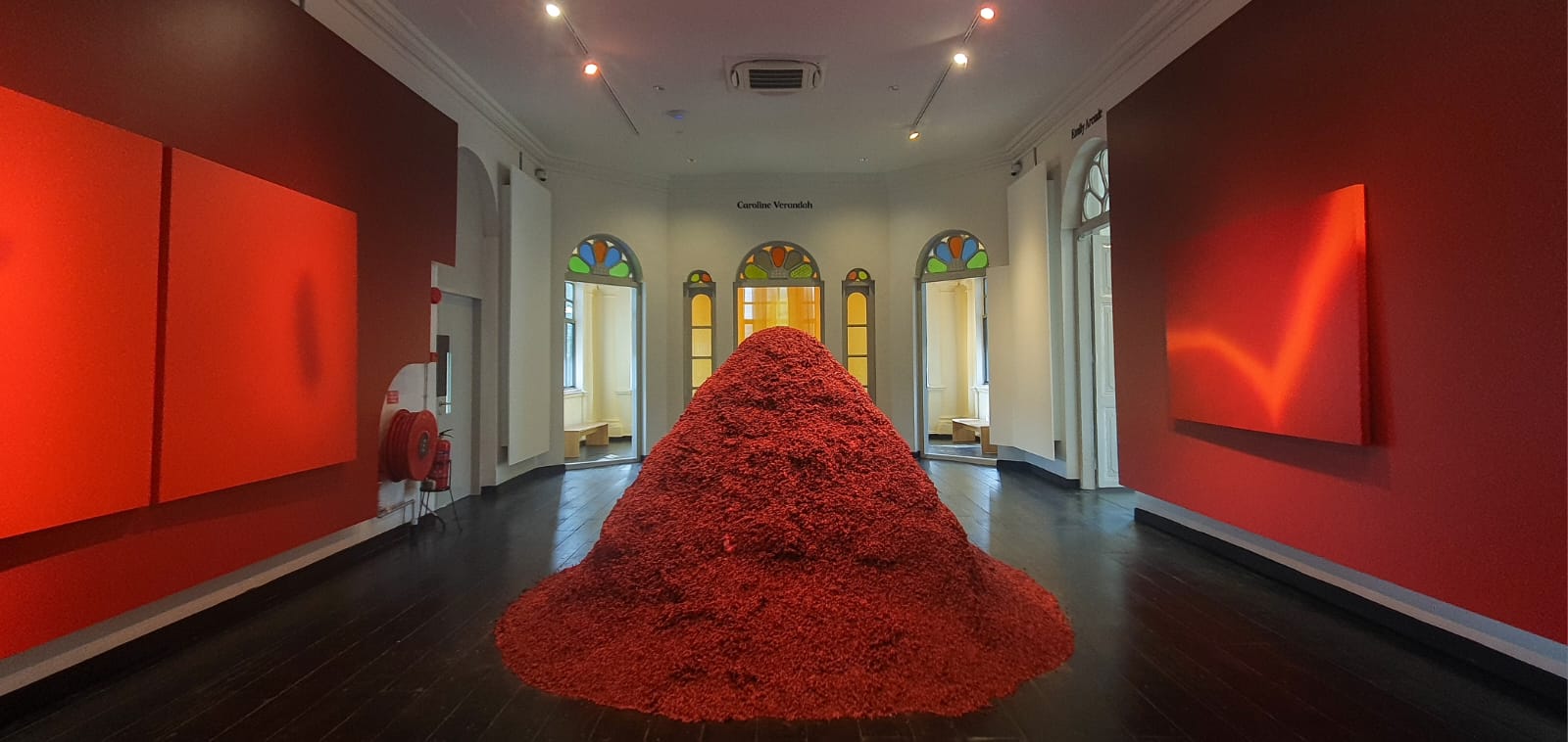 Dancing with the Cosmos: Three Decades of Work from Kumari Nahappan marks the first of these programmes. Bringing together over 50 paintings, sculptures and installations from renowned Malaysian-born Singaporean artist Kumari Nahappan, the exhibition provides a survey of over 3 decades of her artistic practice. In spite of this, Dancing with the Cosmos opts for a slightly unusual approach: rather than utilising a chronological format, artworks are segregated by colour. Each room within the space contains works that resonate with one another in terms of hue, but which may have been created at different points of Nahappan’s career. In doing so, the nonlinearity of Nahappan’s artistic practice is emphasised—cross-referencing, recurrence, continuity and transmutation are all processes integral to her thematic explorations.