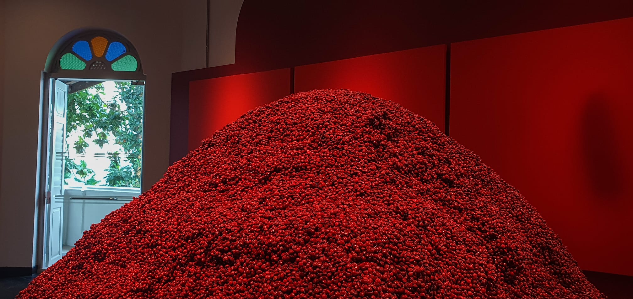 Kumari Nahappan is a contemporary artist born in 1953 in Klang, Malaysia. She is best known for her sculptures and public art, with her larger-than-life replicas of spices and seeds dominating spaces such as ION Orchard and the National Museum of Singapore. However, fewer are aware of her abstract paintings and installations—Dancing with the Cosmos aims to bring these works into greater focus and better understand them in the context of Nahappan’s artistic practice as a whole.